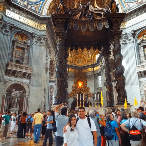 Saímos de lá e fomos para a Piazza di San Pietro para entrarmos na famosa Basílica. A entrada é gratuita, e a fila é imensa, mas anda bem rápido.
