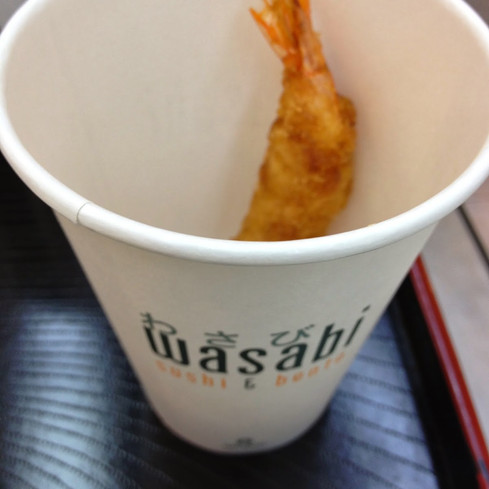 Um fast food de comida japonesa, com caixinhas prontas de sushi e outros pratos quentes. Bem baratinha!