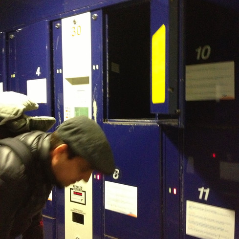 Na própria estação de trem em Bruxelas deixamos nossas malas num "locker", em que são depositadas algumas moedas para a utilização.